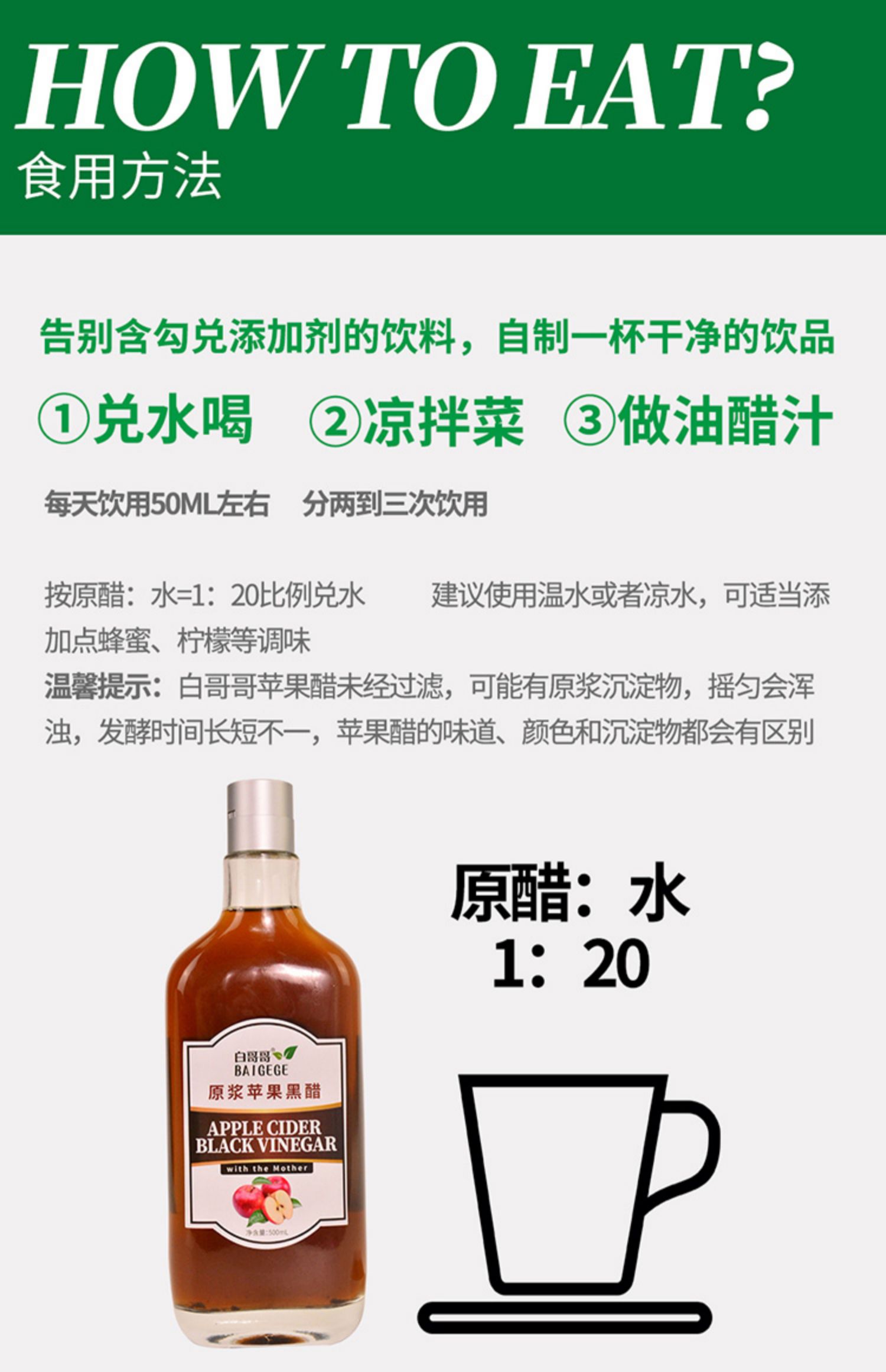白哥哥原浆纯苹果黑醋0脂肪0添加发酵型水果醋健身调味蘸料500ml