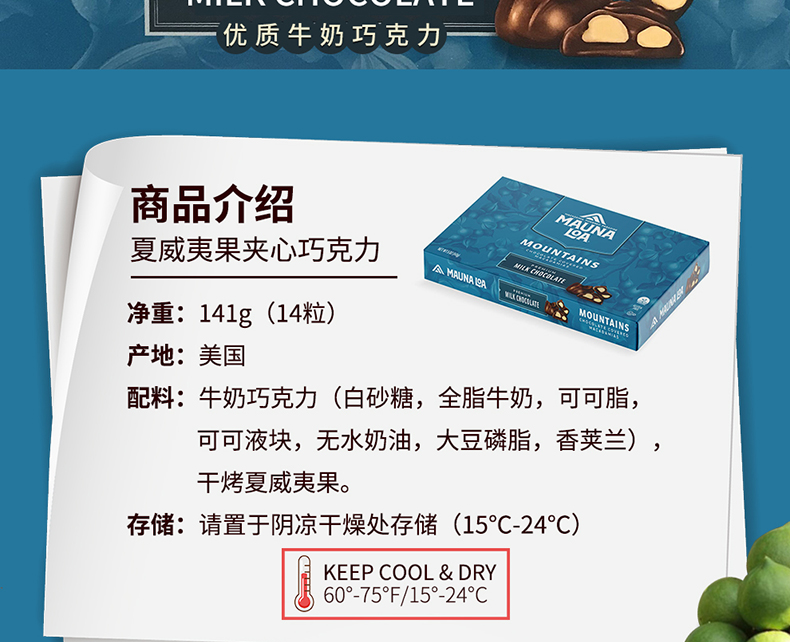 美国进口Mauna Loa莫纳罗夏威夷果仁夹心巧克力850g年货送礼坚果