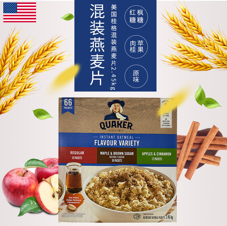 加拿大Quaker麦片桂格2.45kg冲饮燕麦片苹果肉桂枫糖营养早餐